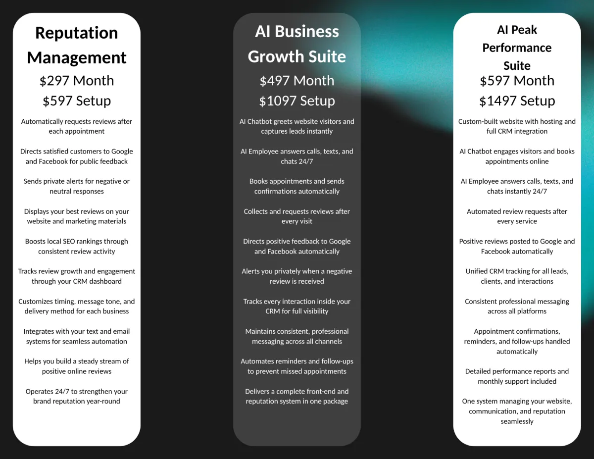 Most businesses lose customers because no one answers fast enough, the website feels outdated, or reviews look weak. AI Peak Biz installs chatbots, voice assistants, and review systems that respond instantly, capture every lead, and keep your reputation strong across every location.